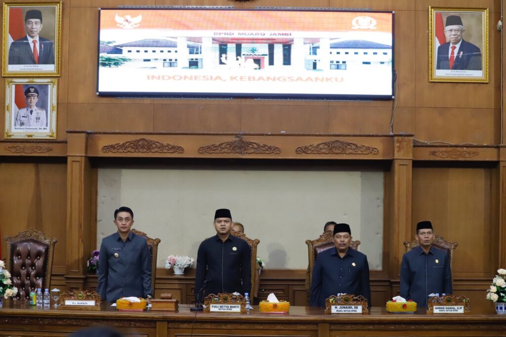 Rapat paripurna itu dipimpin Ketua DPRD Yuli Setia Bakti dan serta dihadiri para anggota dewan, Sekwan DPRD, PJ Bupati Bachyuni Deliansyah SH,MH Sekda Budhi Hartono dan para kepala OPD Di lingkup Pemerintahan Kabupaten Muaro Jambi,
