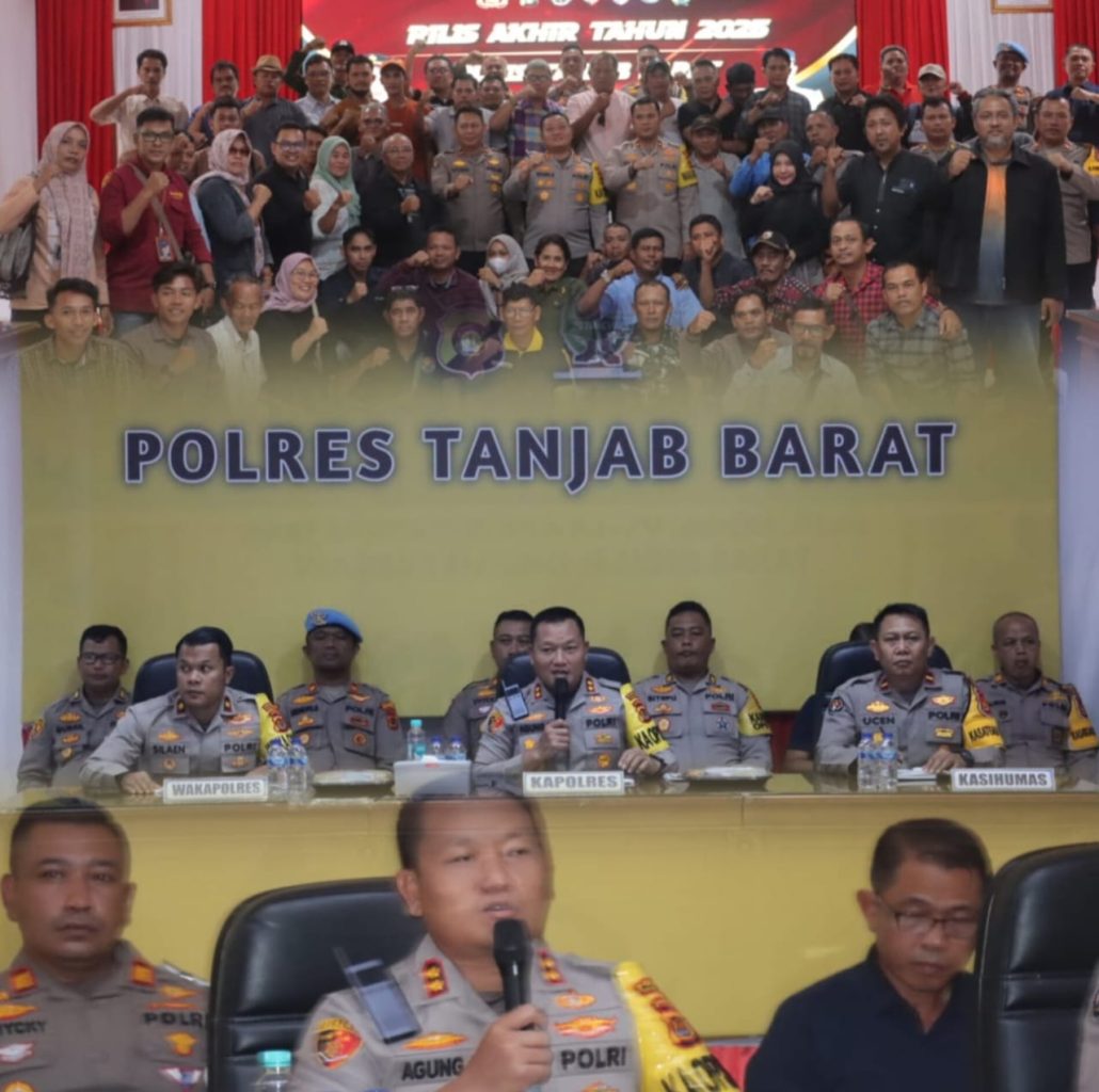 Ranjaunews.com-Tanjab Barat-30 Desember 2025 – Kepolisian Resor (Polres) Tanjab Barat menggelar Rilis Akhir Tahun 2025 di Aula Rekonfu Polres Tanjab Barat, Selasa (30/12/2025). Acara tersebut dipimpin langsung oleh Kapolres Tanjab Barat AKBP AGUNG BASUKI, SIK., MM yang memaparkan sejumlah pencapaian dan statistik kinerja selama satu tahun terakhir.